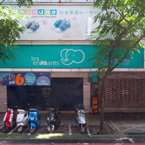Hors catégorie ! Une boutique de vêtements pour enfants, un éléphant : Les Enphants ! Un bris de mots made in Taïwan, en (pas) français dans le texte.